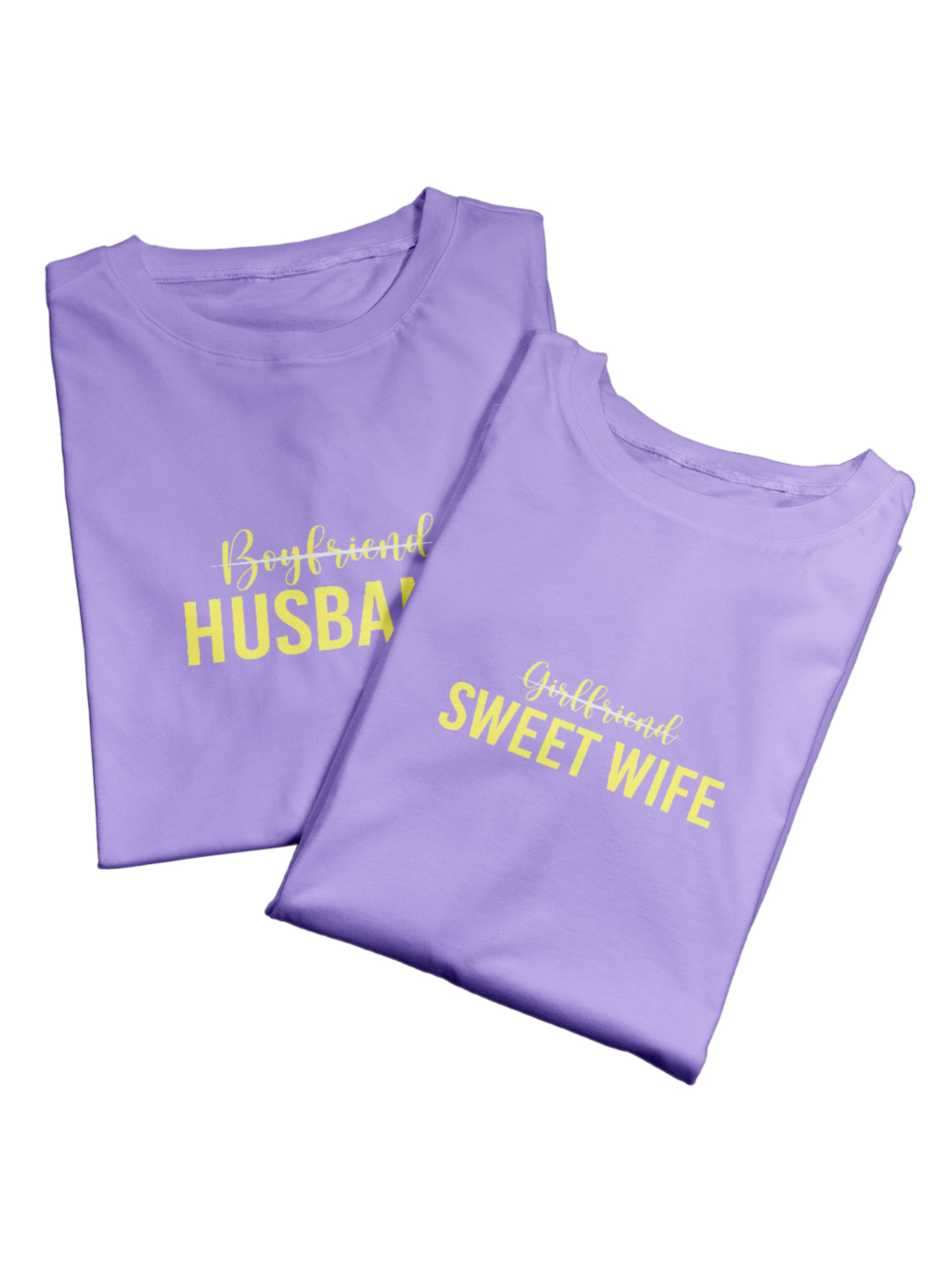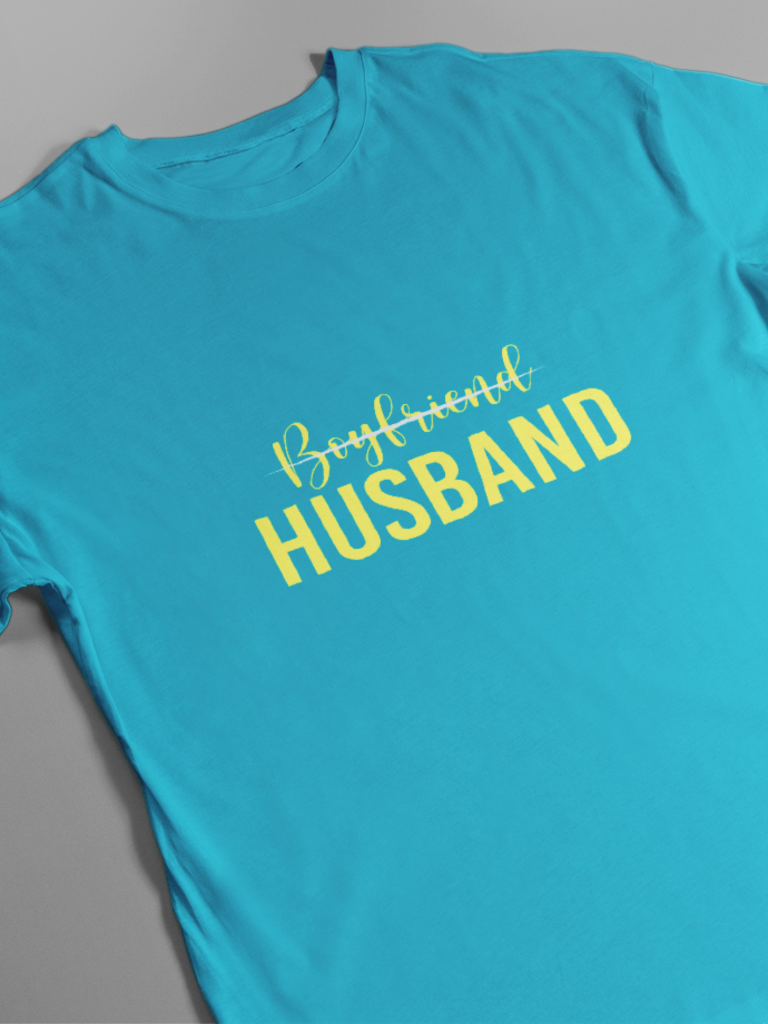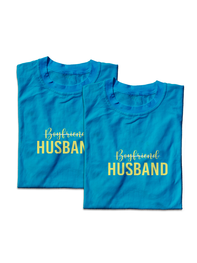 Made from soft, breathable premium cotton, these couple t-shirts offer all-day comfort and a modern fit. The elegant typography with a vibrant print makes this set a beautiful way to express the journey from boyfriend & girlfriend to husband & wife.