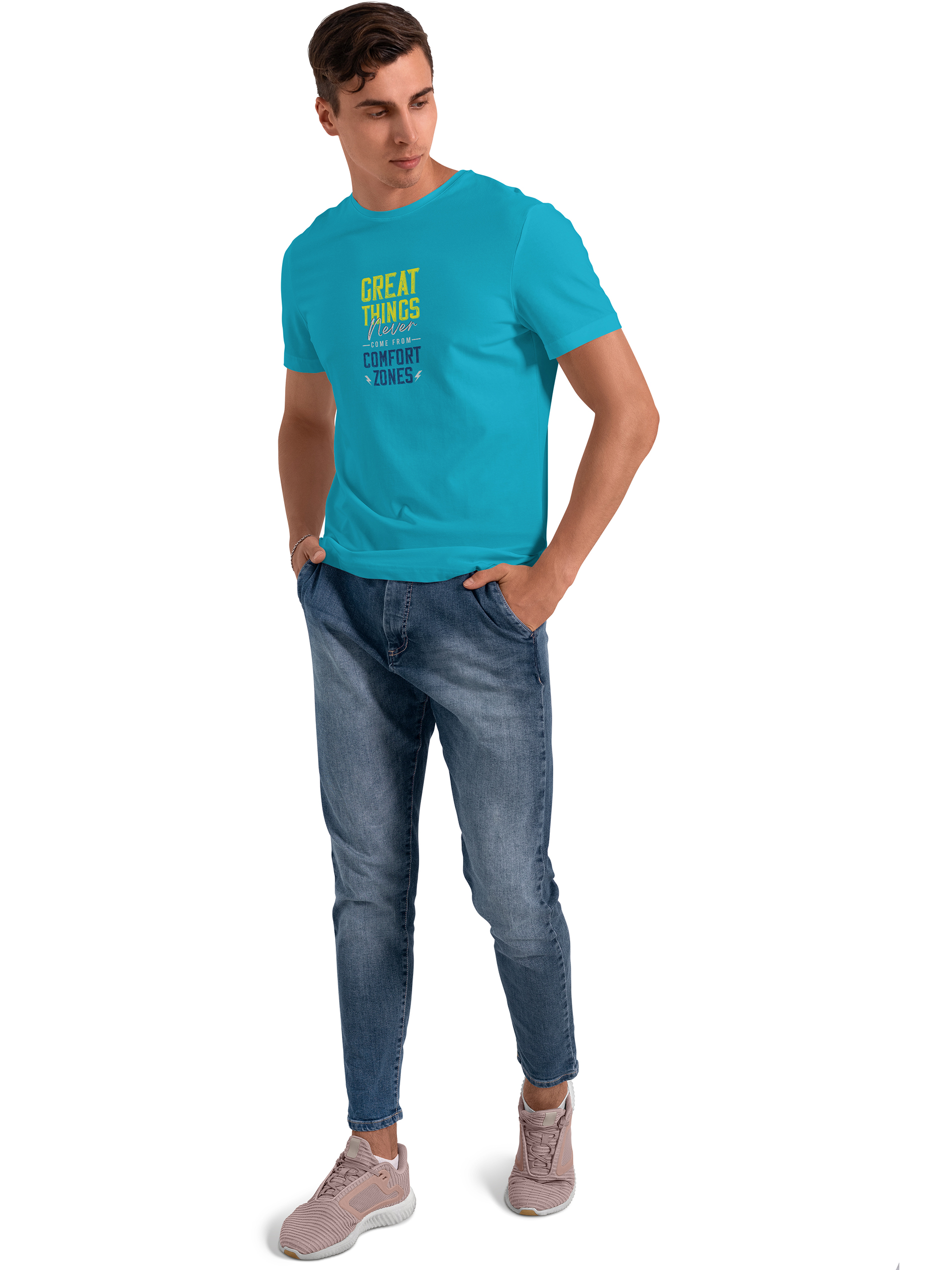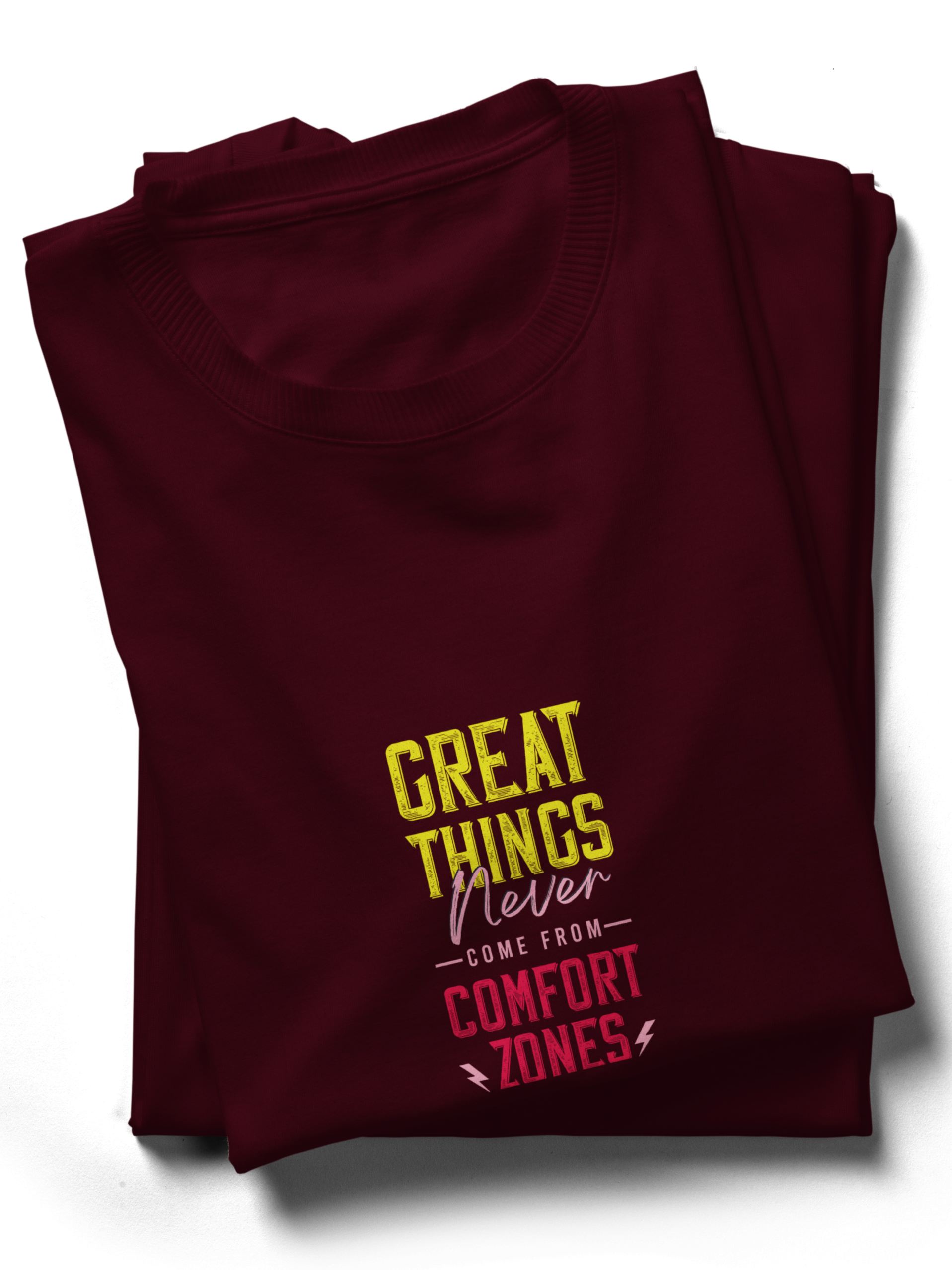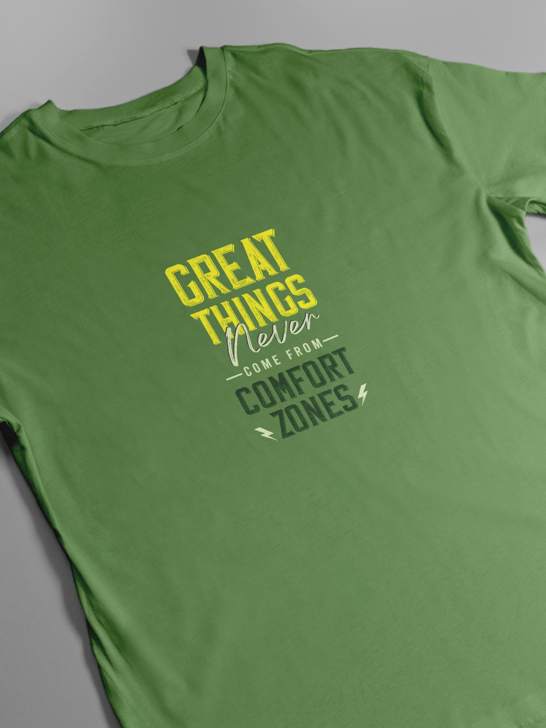 Step beyond limits and embrace growth with the Great Things Never Come From Comfort Zones Motivational T-Shirt. Featuring a bold inspirational quote with dynamic typography, this graphic tee is designed to remind you that success begins outside your comfort zone.