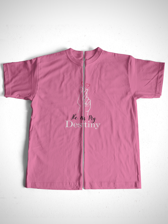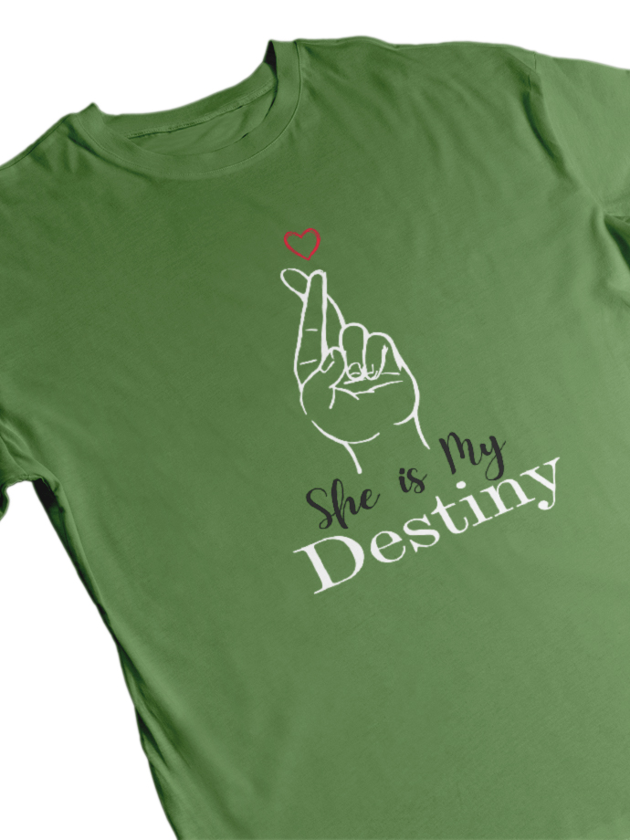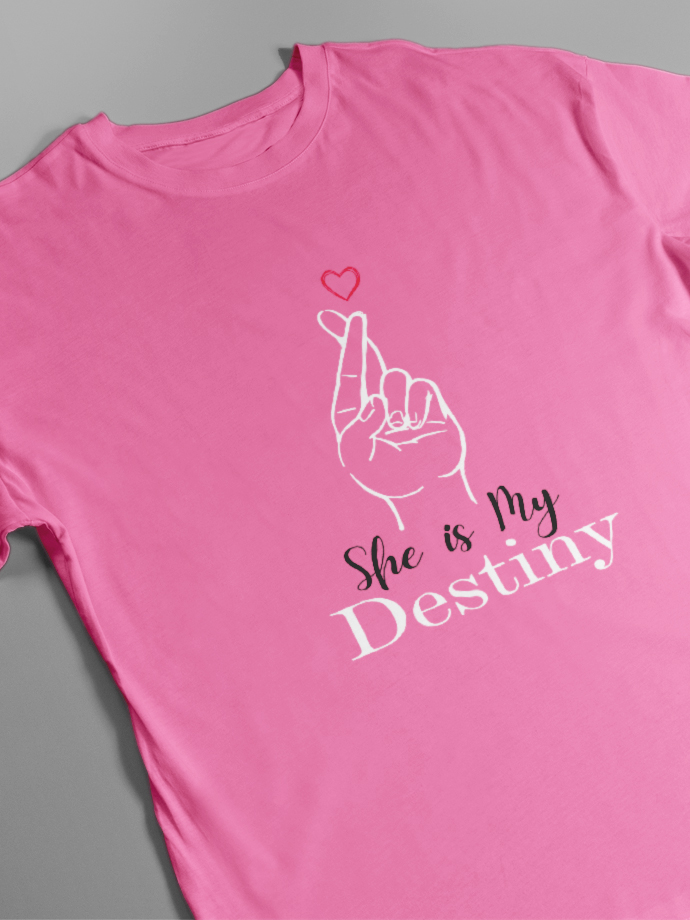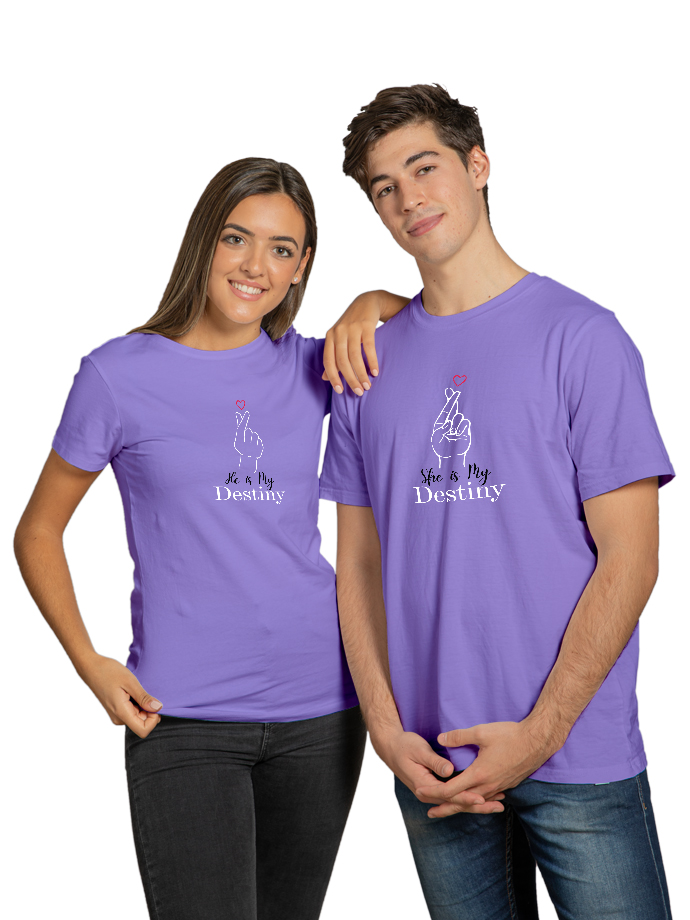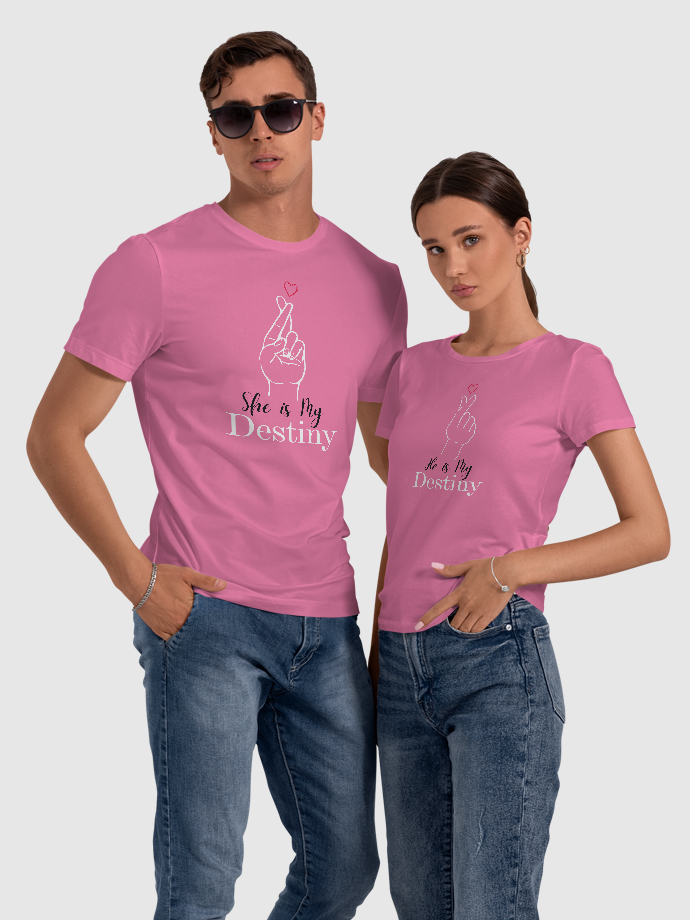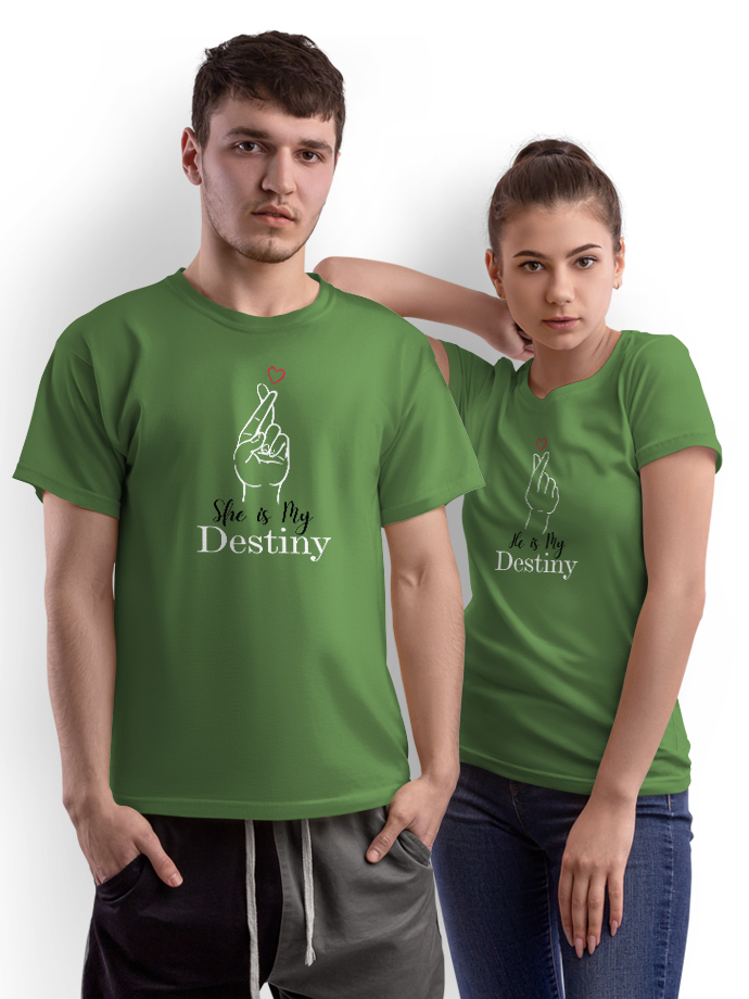 Celebrate your love with our “He Is My Destiny / She Is My Destiny” Matching Couple T-Shirts, designed for couples who believe their love was written in destiny. These stylish and comfortable tees are perfect for showing your bond wherever you go. Made from premium-quality cotton, these couple t-shirts offer a soft feel, breathable fabric, and a comfortable regular fit for all-day wear. Whether you’re going on a date, celebrating an anniversary, taking couple photos, or just hanging out together, these matching tees add a cute and romantic touch to your outfit. Perfect for couple photoshoots, vacations, anniversaries, Valentine’s Day, or gifting your partner. Wear them together and let the world know you are each other’s destiny. Product Features: Soft & breathable premium cotton fabric Comfortable regular fit Stylish matching couple design Perfect for couple photos, dates & gifting Durable print for long-lasting wear Show your love in style with these romantic matching couple t-shirts made for you and your destiny.